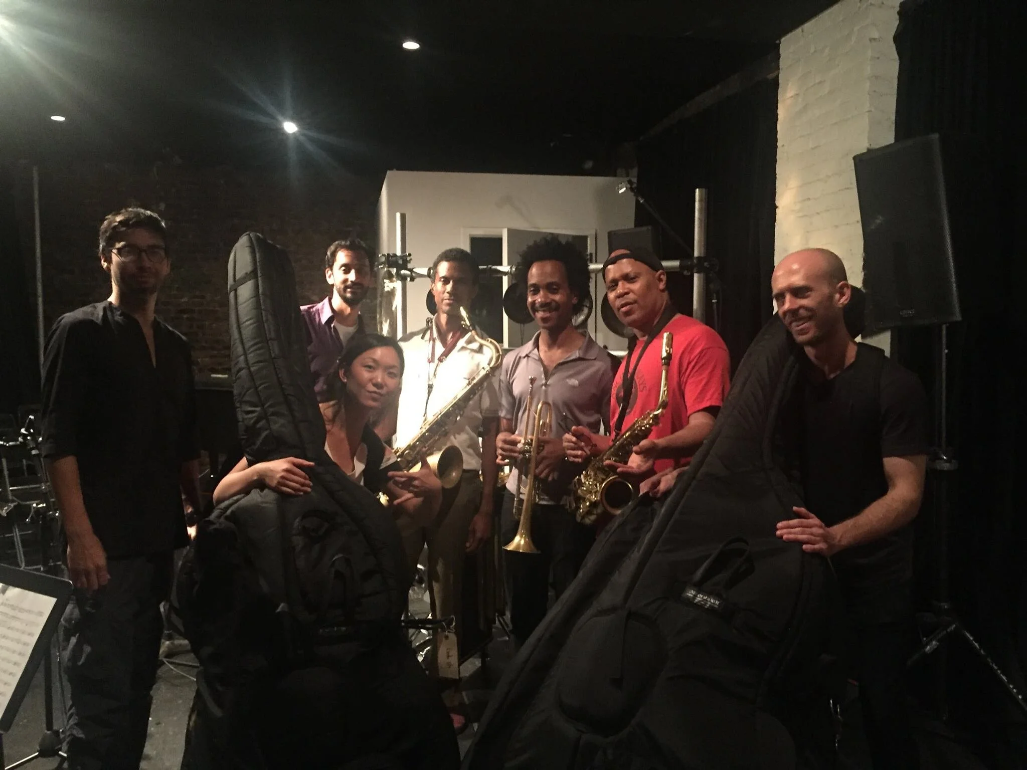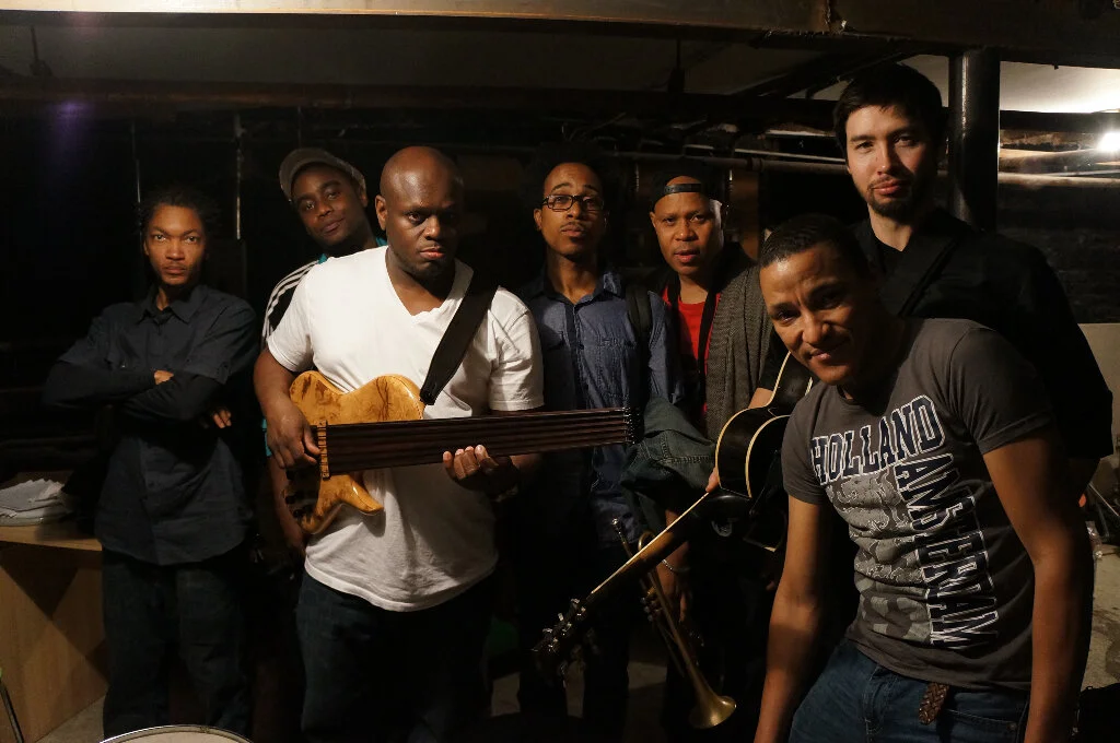 Old and new M-BASE, Village Vanguard: Anthony Tidd, Steve Coleman, James Weidman, Lonnie Plaxico, Bradley Jones, Miles Okazaki, David Gilmore, Greg Osby, Andy Milne, Jonathan Finlayson, (Sean Rickman in front, Seth Rosner in the background right)